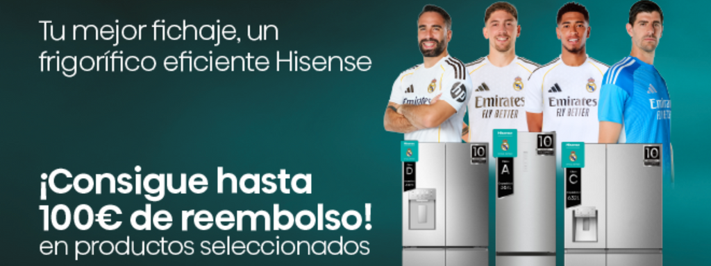 Consigue hasta 100€ de reembolso por la compra de un frigorífico eficiente de Hisense incluidos en la promoción.