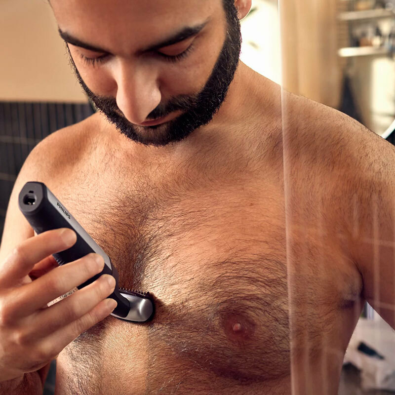 *¡¡Arreglo corporal completo en un solo producto:!! Ahora puedes arreglarte con confianza todo el cuerpo con un solo aparato. Este se de arreglo personal corporal para hombres de Philips recorta el vello en 3 longitudes diferentes para ofrecer resultados limpios y uniformes en la espalda, los hombros, el pecho, los abdominales, las axilas, los brazos, las ingles y las piernas. *¡¡Arregla las zonas difíciles con el accesorio para la espalda:!! Elimina cómodamente el vello de la espalda. Este accesorio se ha diseñado específicamente para afeitar con comodidad la espalda. *¡¡Afeitado seguro y cómodo de la piel delicada:!! El cabezal de afeitado cuenta con puntas redondeadas patentadas y una lámina hipoalergénica para proteger la piel de los cortes y los pellizcos durante el afeitado. *¡¡Recortador y peine-guía bidireccionales para recortar en todas las direcciones:!! El sistema de afeitado incluye 3 peines-guía extraíbles para recortar a 2, 3 y 5 mm. También puedes usarlo sin peine-guía para conseguir un acabado más apurado. *¡¡Afeitadora corporal diseñada para durar sin lubricación:!! Todos nuestros productos de arreglo personal se han diseñado para durar. Cuentan con 2 años de garantía estándar global, con la opción de ampliarla hasta los 5 años, y no necesitan lubricación. *¡¡Afeitadora corporal 100 % impermeable:!! Tu afeitadora corporal en seco y húmedo es totalmente resistente al agua, por lo que puedes usarla dentro o fuera de la ducha y limpiarla fácilmente. Para obtener los mejores resultados, utilízala con el vello seco, antes de ducharte. *¡¡60 minutos de uso sin cable y carga rápida en 1 hora:!! Batería recargable de alta potencia para uso corporal completo, con 60 minutos de uso sin cable. Con la solución de carga rápida, podrás volver a usar el aparato tras 5 minutos de carga. *¡¡Empuñadura ergonómica para un mayor control del afeitado:!! La afeitadora corporal es fácil de sujetar y manejar, con un mango ergonómico de goma para un corte más controlado.