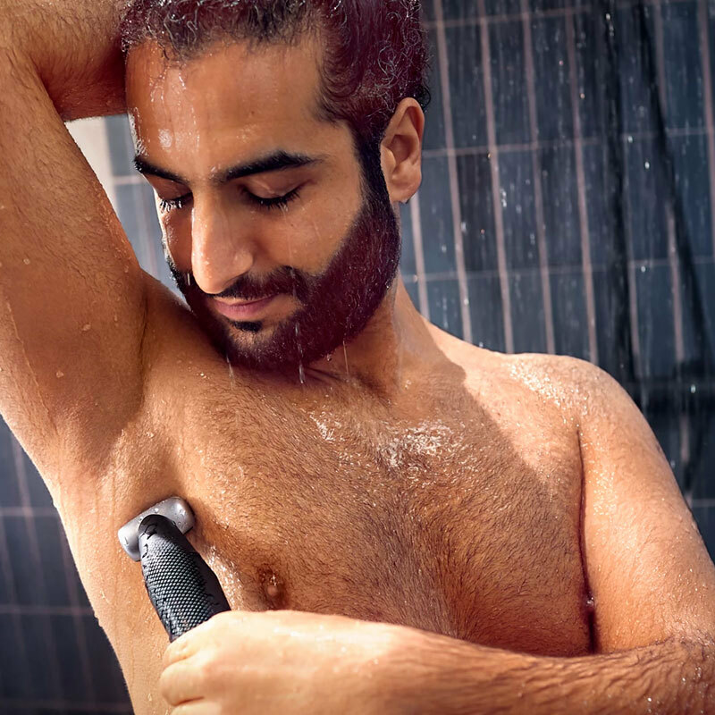 Accesorio para la espalda - Autonomía 60 min - Wet & Dry uso en la ducha 3 Peines-guía para cuerpo (2, 3 y 5 mm) - Sin necesidad de aceite Carga rápida en 5 min Lámina con dos precortadores Sistema de protección de la piel Comodidad en las zonas sensibles 3 Ajustes de longitud fijos Uso sin cable Mango y agarre ergonómicos