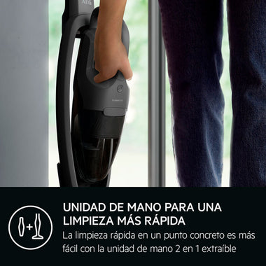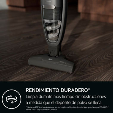 ¡Introduce tu código postal y consulta los servicios disponibles! Descubre el nuevo aspirador AEG AS52CB18DG, el aliado perfecto para mantener tu hogar impecable con la máxima comodidad. Este aspirador escoba, sin cables y sin bolsa, combina potencia y ligereza en un diseño elegante y funcional que hará que la limpieza sea un placer. Con un peso de tan solo 3,49 kg, podrás moverte con total libertad por tu hogar, alcanzando incluso los rincones más difíciles gracias a su cabezal iluminado. Su potente motor de 29 W y su innovador cepillo UltimatePower multi-surface garantizan un rendimiento excepcional en todo tipo de superficies. Olvídate de las limitaciones gracias a su batería de ion-litio de 3.6 V, que ofrece hasta 45 minutos de autonomía, permitiéndote limpiar de una sola pasada toda la casa sin interrupciones. Además, con un tiempo de carga de solo 4,5 horas, tu AEG estará siempre listo para la acción. Su depósito de 0,3 litros es perfecto para un almacenamiento rápido y sin complicaciones. Con dimensiones compactas de 1105 x 140 x 255 mm, encaja perfectamente en cualquier espacio, siendo fácil de almacenar. El AEG AS52CB18DG no solo es práctico, sino que también está diseñado pensando en tu comodidad, con controles intuitivos de botón que facilitan su uso. Ya sea para una limpieza rápida o una sesión más intensa, este aspirador ofrece todo lo que necesitas para que tu hogar luzca siempre perfecto, con la calidad y garantía que solo AEG puede ofrecer.