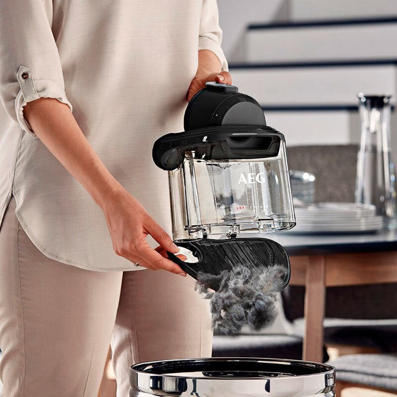 Silence pro ? para aspirar sin hacer ruido: Aspira sin hacer ruido. La aspiradora sin bolsa AEG LX7 se ha diseñado con el silencio en mente. La combinación de un motor de ruido optimizado junto al nuevo silencioso cepillo DustMagnet? Silent garantiza una limpieza más silenciosa sin que el rendimiento se vea afectado. Para un hogar más limpio e higiénico: El sistema de filtrado HEPA es capaz de filtrar partículas de polvo fino tan pequeñas como 0,3 micras hasta en un 99,99 %, además de ácaros y alérgenos, para proporcionar un aire más limpio. El sistema easy empty? permite mantener tu hogar sin rastro de polvo: Mantén tu hogar sin rastro de polvo. El sistema Easy Empty? te permite eliminar fácilmente todo el polvo de tu hogar. Lo único que tienes que hacer es extraer y vaciar el depósito del aspirador.