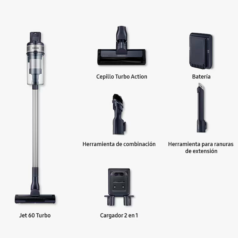 *¡¡Rendimiento de limpieza más avanzado:!! Limpia varios tipos de suelo de forma eficaz con una aspiradora inalámbrica, ligera y potente. El motor Digital Inverter genera una potencia de succión de hasta 150W. El diseño aerodinámico del sistema de aire también optimiza su flujo, mientras que la filtración de aire multiciclónica atrapa las partículas más finas de polvo. *¡¡Motor Digital Inverter:!! El Motor Digital Inverter favorece el flujo de aire gracias al diseño aerodinámico generando hasta 150W de succión *¡¡Jet Cyclone:!! Disfruta de un aire más limpio y una potencia de succión extrema durante más tiempo con la estructura multiciclónica de alta eficiencia del sistema Jet Cyclone. Las 27 entradas de aire de Jet Cyclone crean una ruta de aire óptima, minimizando así la pérdida de succión. También separa higiénicamente las partículas finas de polvo del aire *¡¡Cepillo Turbo Action:!! Recoge partículas finas de polvo en alfombras y suelos duros con el cepillo Turbo Action. Gira alrededor de 3.750 veces por minuto. Un cabezal giratorio de 180 grados te permite cambiar de dirección fácilmente y limpiar cada esquina. *¡¡Sistema de Filtración Multicapa 99.999%:!! Atrapa el 99,999% del polvo y reduce los alérgenos gracias al Jet Cyclone y un microfiltro multicapa. ¡Captura hasta el polvo más fino gracias al ciclón principal y al filtro de rejilla de malla metálica! *¡¡Estación de carga 2 en 1:!! Almacena y carga tu aspiradora de manera más flexible con la estación de carga 2 en 1, que se ajusta fácilmente a cualquier hogar. Si deseas ahorrar espacio, puedes montarlo en la pared, o puedes usarlo como un cargador independiente, por lo que simplemente podrás quitar la batería y cargarla en cualquier lugar. *¡¡Batería extraíble:!! Hasta 40 minutos de limpieza. Limpia toda tu casa de esquina a esquina, con una duración de hasta 40 minutos utilizando una sola batería. Conserva el 70% de su rendimiento original hasta 500 ciclos. Además, puedes comprar una de repuesto y cargarlas a la vez. ¡No te quedes a la mitad! *¡¡Diseño ligero:!! Limpia hasta el último rincón de tu casa sin esfuerzo gracias al diseño ergonómico, un 21% más ligero que las aspiradoras convencionales. ¡Garantiza la máxima usabilidad y reduce la tensión en tu muñeca!