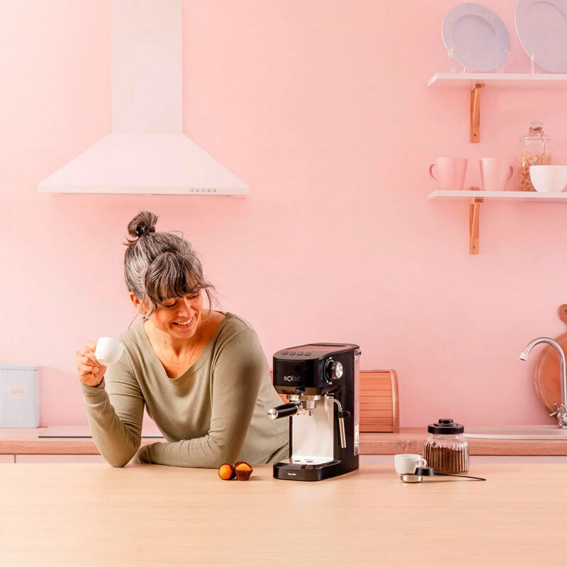 Auténtico espresso con 20 bares de presión Disfruta de un café intenso y aromático gracias a sus 20 bares y al sistema Thermoblock, que garantiza una temperatura óptima desde la primera taza. Elegí entre espresso, espresso doble, agua caliente o vapor según el momento - Más control, más comodidad Programa la cantidad de café a tu gusto y aprovecha su depósito extraíble de 1,4?L para olvidarte de recargas constantes. Además, incluye cucharilla y prensador para un café perfecto cada día - Diseño práctico para el día a día La bandeja calienta tazas mantiene tu espresso a la temperatura ideal. El portafiltros con sistema de fijación automático y la bandeja recoge gotas extraíble hacen que preparar y limpiar sea más fácil que nunca. - Espuma perfecta como en una cafetería El vaporizador de acero inoxidable te permite espumar leche con precisión para tus capuccinos o lattes. Compacta por fuera, profesional por dentro: todo lo que esperas de una cafetera espresso.