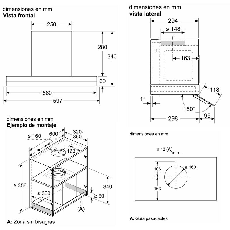Capacidad de extracción - Cocina de más de 15 metr,Visera de cristal,Iluminacion intensidad regulable