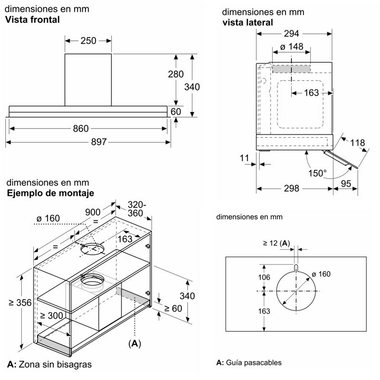 Capacidad de extracción - Cocina de más de 15 metr,Visera de cristal,Iluminacion intensidad regulable