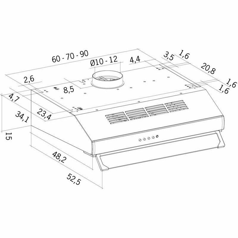 Capacidad de extracción - Cocina de 9 a 15 metros ,Visera de cristal