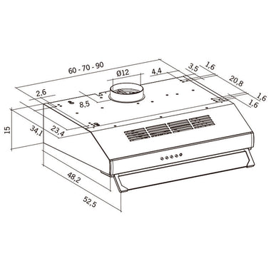 Capacidad de extracción - Cocina de 9 a 15 metros ,Visera de cristal