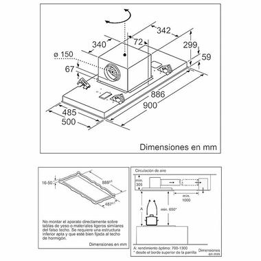 Capacidad de extracción - Cocina de más de 15 metr,Aspiración perimetral,Iluminacion intensidad regulable