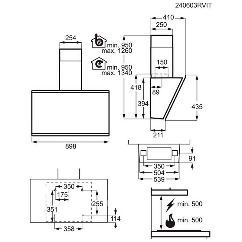 Campana decorativa AEG GV77D91SB Cristal Negro 90 cm