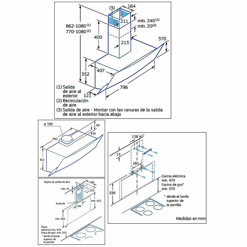 Capacidad de extracción - Cocina de más de 15 metr,Aspiración perimetral