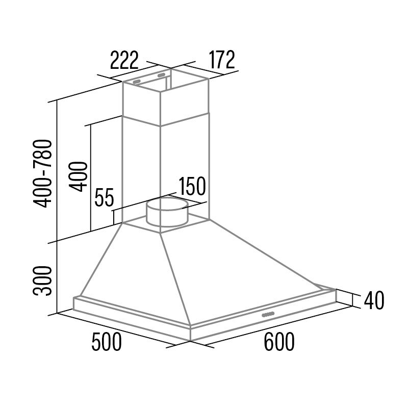 Campana decorativa Cata Beta PRO 6000BK Acero Negro 60 cm
