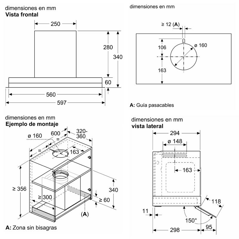 ["LZ16IBI14 Kit de recirculación estándar (no alta eficiencia) - LZ11IBN61 Conducto prolongador negro","H (187-360) mm - LZ11IBK61 Conducto prolongador negro","H (450-854) mm"]