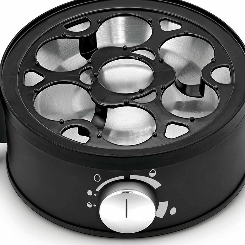 *Cocedero de huevos *3 Grados cocción - De 1 a 7 huevos *WMF Cromargan® mate *Temperatura constante y homogénea en toda la máquina *3 grados de cocción *De 1 a 7 huevos de capacidad *Señal acústica automática para detener la cocción *Interruptor encendido/apagado que se ilumina *Bandeja de acero inoxidable *Protección contra sobrecalentamiento *Recipiente de medición con perforador de huevos *Potencia: 380 vatios
