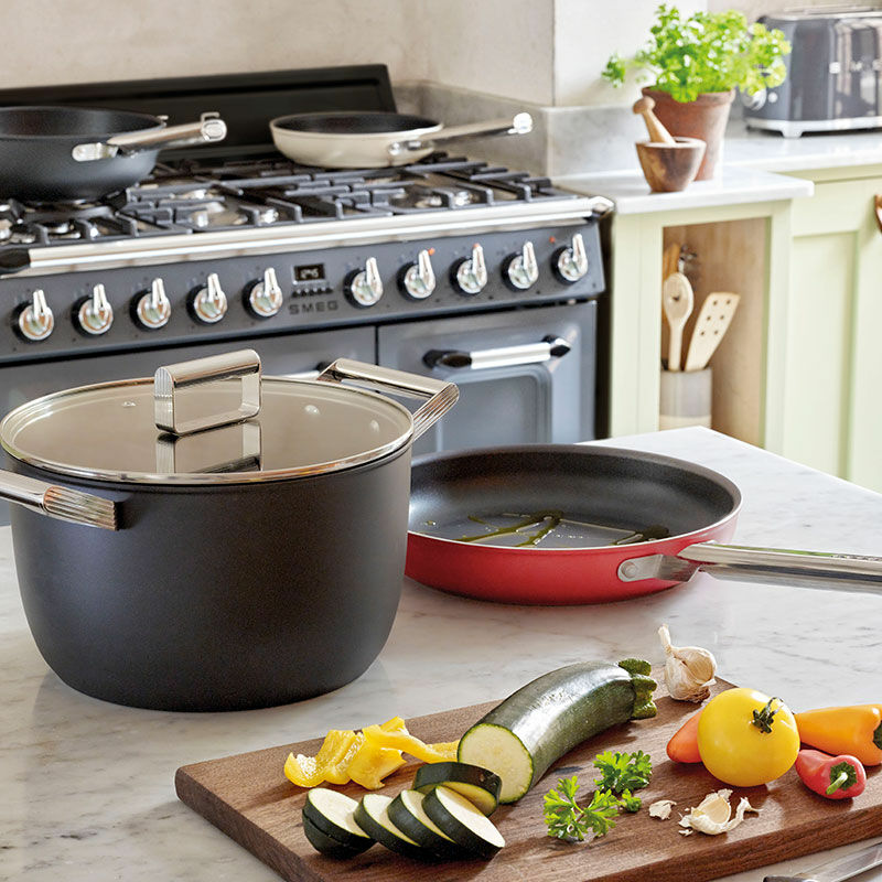 1 Bandeja profundidad 40 mm, 1 parrilla integrada en la bandeja, 1 rejilla en hierro colado para moka, 2 parrillas horno con tope trasero y lateral, 1 rejilla en hierro colado para wok, 4 parrillas con tope trasero, 1 bandeja profundidad 40 mm, 1 parrilla horno