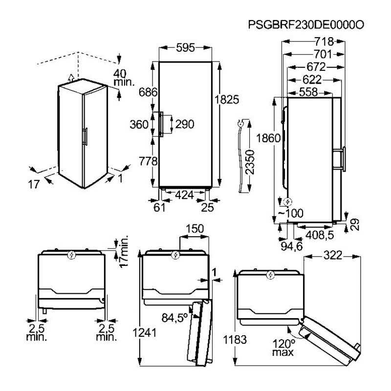 Puerta a izquierda (reversibles por SAT) Patas regulables en altura Ruedas fijas en la parte trasera