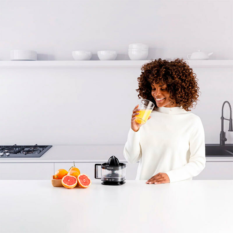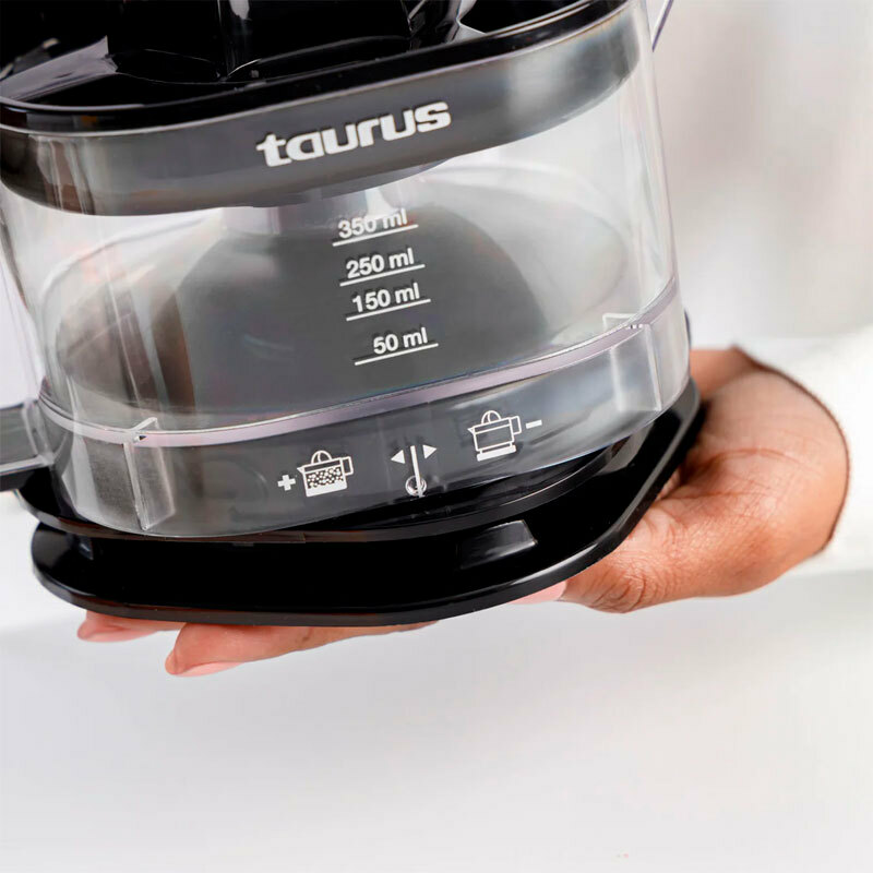 *Exprimidor con filtro regulador de pulpa que permite personalizar el nivel de pulpa de tu zumo. Gira el cuerpo del exprimidor y colócalo en una de sus 5 posiciones distintas que te permitirán obtener un zumo con más o menos pulpa, ¡incluso sin nada! *¡¡5 posiciones para controlar el nivel de pulpa:!! Exprimidor con filtro regulador de pulpa que permite personalizar el nivel de pulpa de tu zumo. Gira el cuerpo del exprimidor y colócalo en una de sus 5 posiciones distintas que te permitirán obtener un zumo con más o menos pulpa, ¡incluso sin nada!. *¡¡Para todo tipo de cítricos:!! Incluye un gran cono exprimidor para que puedas exprimir todo tipo de cítricos, desde limas o limones hasta mandarinas, naranjas o pomelos. *¡¡Depósito transparente:!! El depósito del exprimidor TC-350 Nero es de 350ml y transparente, para que sepas en todo momento cuanto zumo llevas exprimido. *¡¡Ergonómico y fácil de usar:!! TC-350 Nero tiene una gran asa de agarre para que puedas cogerlo cómodamente, e incluye también una cavidad en la base en la que podrás enrollar el cable para guardarlo fácilmente. *¡¡Diseño compacto:!! Diseñado para optimizar el espacio, no solo al usarlo, si no también al guardarlo.