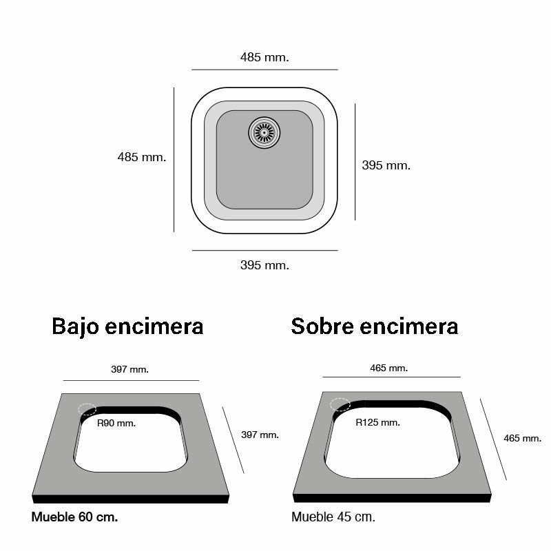 395 x 395 x 170 mm (ancho x fondo x Profundo)