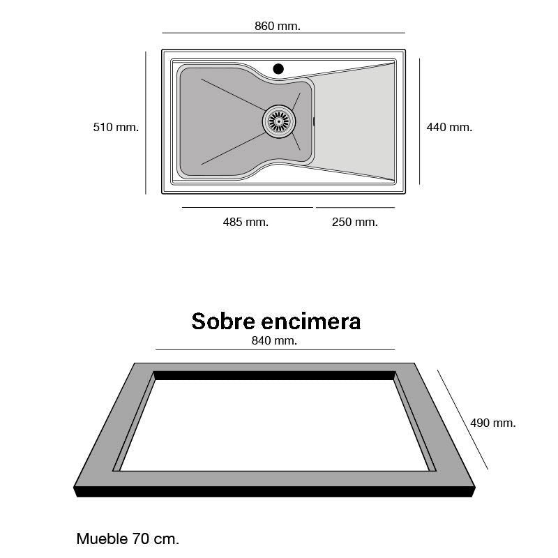 485/250 x 440 x 220 mm (ancho x fondo x Profundo)