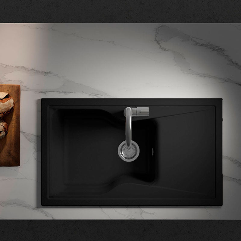 Fregadero Poalgi City 1C+E Negro Liso Brillo