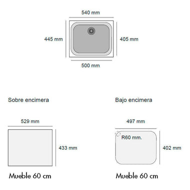 500 x 405 x 200 mm (ancho x fondo x Profundo)