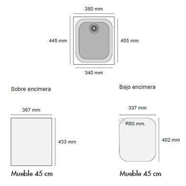 340 x 405 x 200 mm (ancho x fondo x Profundo)