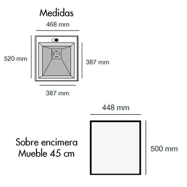 387 x 387 x 200 mm (ancho x fondo x Profundo)