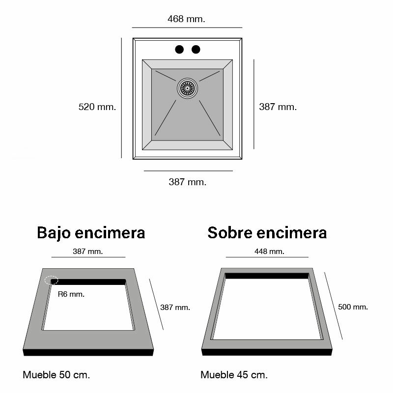 387 x 387 x 220 mm (ancho x fondo x Profundo)