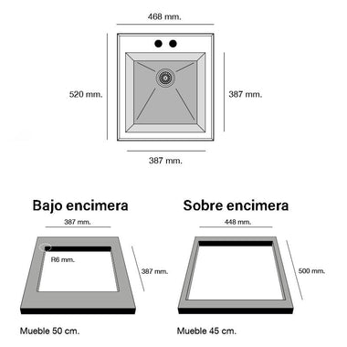 387 x 387 x 220 mm (ancho x fondo x Profundo)
