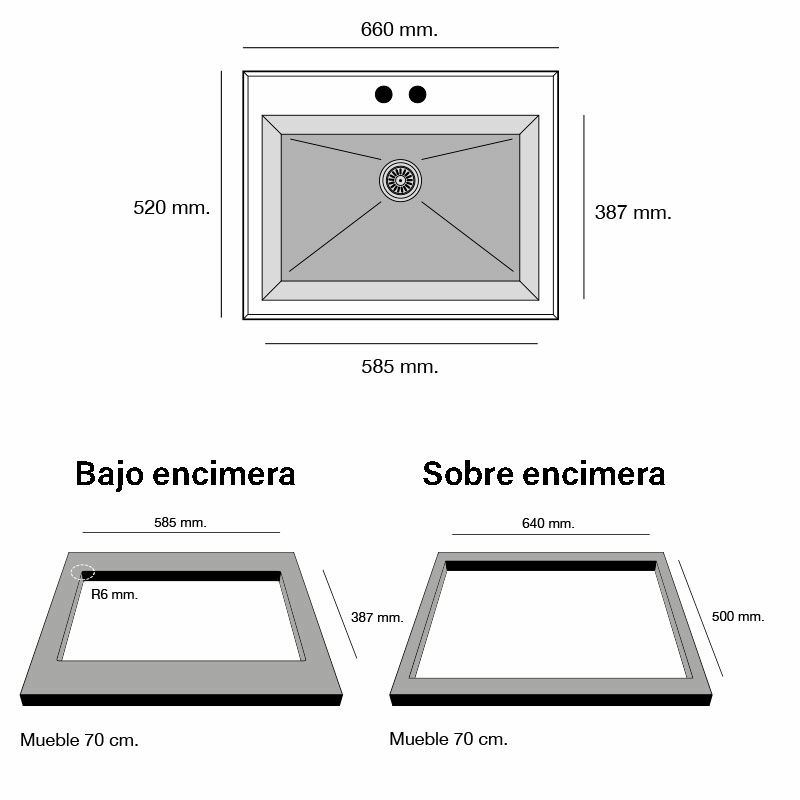 585 x 387 x 220 mm (ancho x fondo x Profundo)