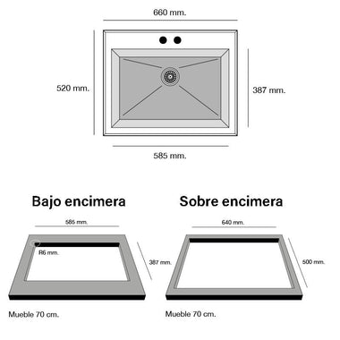 585 x 387 x 220 mm (ancho x fondo x Profundo)