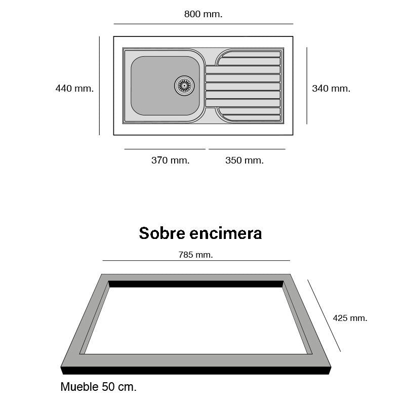 370/350 x 340 x 180 mm (ancho x fondo x Profundo)
