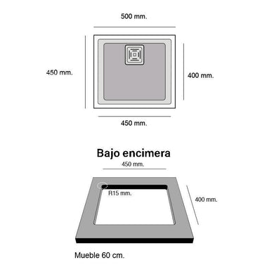 450 x 400 x 200 mm (ancho x fondo x Profundo)