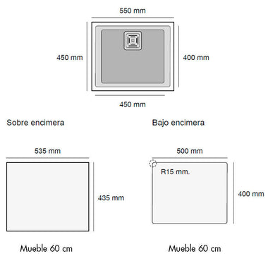 450 x 400 x 200 mm (ancho x fondo x Profundo)