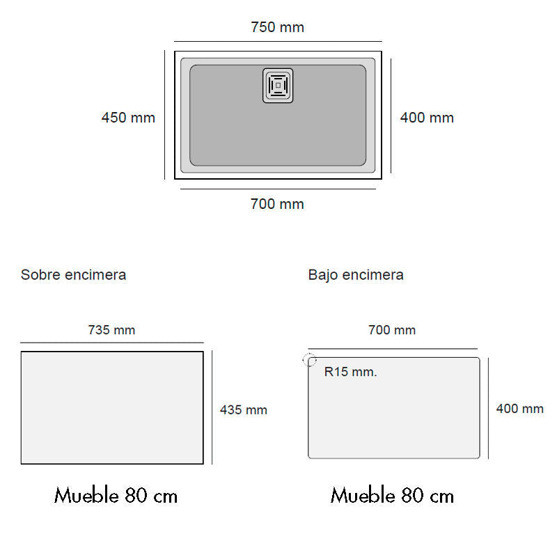700 x 400 x 200 mm (ancho x fondo x Profundo)
