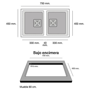 330/330 x 400 x 200 mm (ancho x fondo x Profundo)