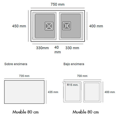 330/330 x 400 x 200 mm (ancho x fondo x Profundo)