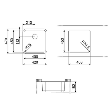 Grosor 0,6 mm Radio ángulo Cubeta: 75 mm Rebosadero tradicional Filtro de pared de 3.5
