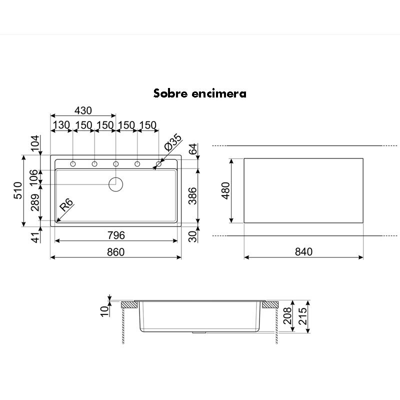 Radio ángulo Cubeta: 6 mm Antibacteriano Resistente a arañazos Resistente a choques térmicos Resistente altas temperaturas Resistentes a impactos Fácil de limpiar Resistente a los rayos ultravioletas, no decolora con el tiempo Rebosadero alienado