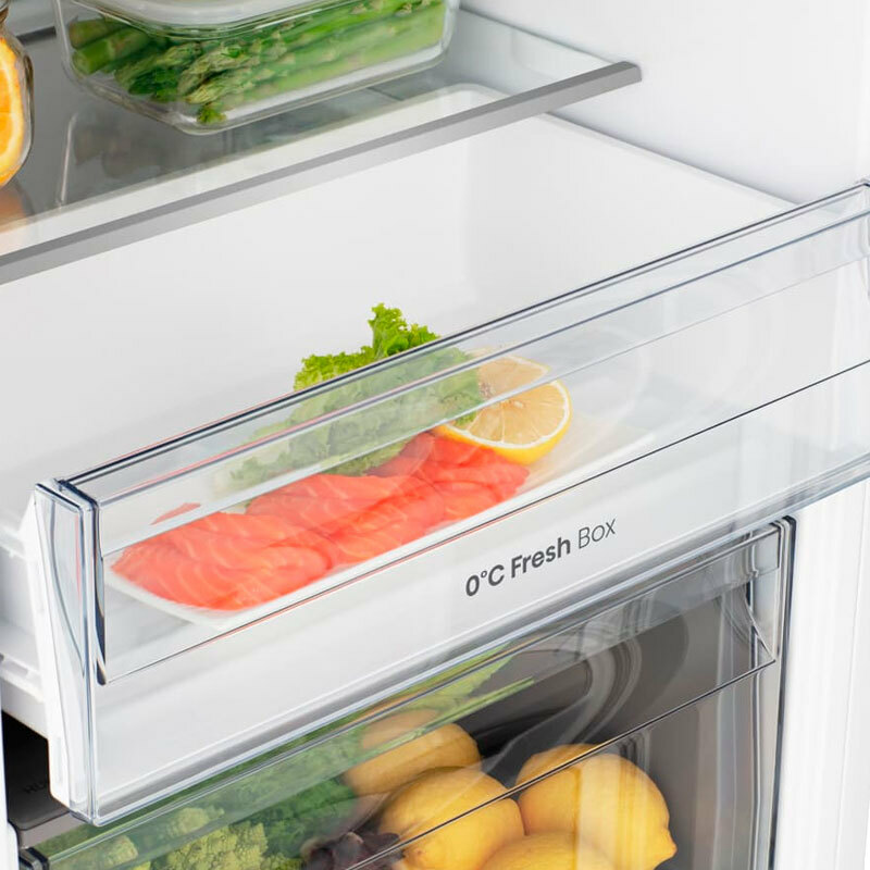 2 Cajones para frutas y verduras con control de humedad - 1 Cajón Freshbox 0º - 4 Estantes de los cuales 2 regulables en altura - 5 Balcones en la puerta - Botellero