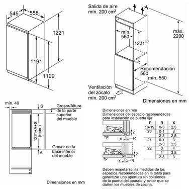 : Dimensiones Encastre (Alto x Ancho x Fondo): 1221 x 560 x 560 mm