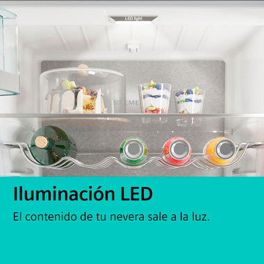 El contenido de tu nevera sale a la luz. Las luces LED integradas iluminan el interior de tu frigorífico de forma uniforme para que puedas ver fácilmente lo que hay dentro. Como están estratégicamente situadas en la parte delantera, el contenido del frigorífico no produce sombras. Y lo que es mejor: