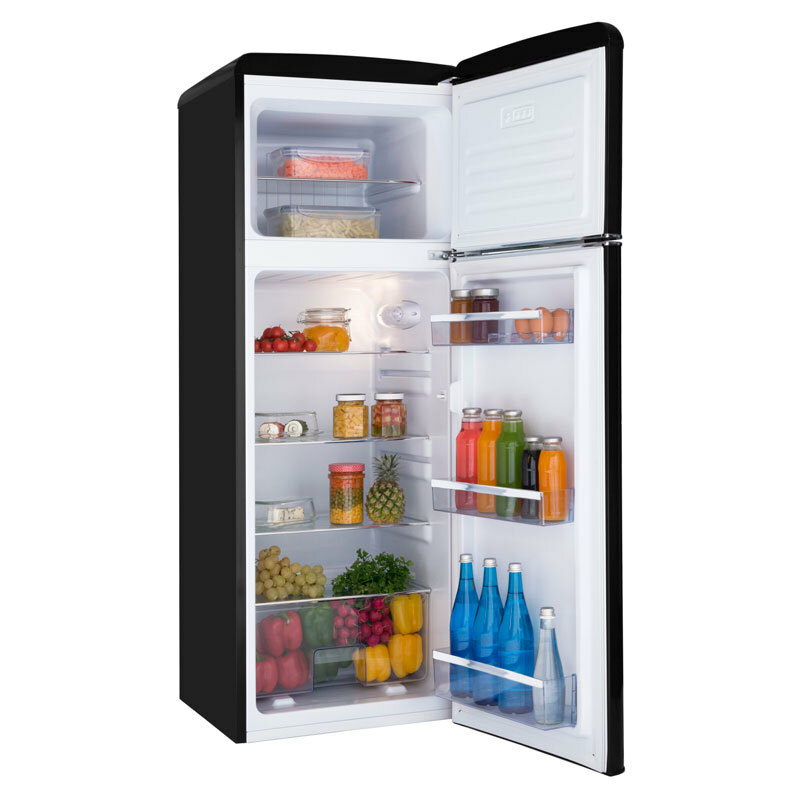 ["Iluminación interior LED","3 Bandejas de vidrio templado - 1 Cajón para frutas y verduras - 1 Estante grande porta botellas - 2 Estante mediano"]