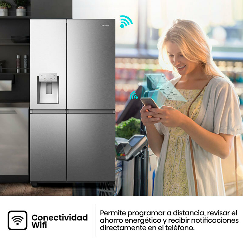 *¡¡Dispensador de agua y hielo con deposito interior:!! Refréscate en cualquier momento con agua helada, hielo picado o en cubitos sin necesidad de abrir el frigorífico. *¡¡Conectividad Wifi:!! Permite programar a distancia, revisar el ahorro energético y recibir notificaciones directamente en el teléfono. *¡¡Metal Cooling:!! Recubrimiento interior de metal que garantiza la temperatura deseada en todo el interior. *¡¡Multi air Flow:!! Tecnología que logra una distribución uniforme del frío, asegurando una temperatura óptima en cada rincón. Conserva perfectamente todos los alimentos. *¡¡Micro vents cooling:!! Pequeñas micro perforaciones que inyectan aire frío en distintas alturas del frigorífico asegurando las mejores condiciones en todos los rincones. *¡¡Congelación rápida:!! Baja la temperatura y congela tu comida mucho más rápido. Esta función conserva el sabor natural de los alimentos, su textura original y todos los buenos nutrientes. *¡¡Enfriamiento rápido:!! Reduce rápidamente la temperatura preservando los alimentos en óptimas condiciones. *¡¡Cajón frutas y verduras:!! Mantiene la temperatura y humedad ideal para preservar la frescura y el aroma. Su diseño transparente permite visualizar fácilmente el interior. *¡¡Alarma de puerta abierta:!! Si olvidaras cerrar alguna puerta, será detectado por sensores inteligentes que activarán una alarma sonora para evitar la pérdida de la cadena de frío. *¡¡Display en la puerta:!! Permite configurar la temperatura y las funciones especiales de forma sencilla e intuitiva. *¡¡Control táctil:!! Completo panel electrónico de fácil uso que permite elegir la temperatura deseada y activar las funciones especiales. *¡¡Iluminación LED:!! Mayor visibilidad y menor consumo de energía utilizando tecnología LED que ilumina todo el interior. *¡¡Modo ECO:!! Funcionamiento eficiente para un hogar sostenible. Configura la temperatura del frigorífico en +4ºC y el congelador a -18ºC. ¡Cuida el planeta y tus alimentos! *¡¡Total no frost:!! Olvídate de la acumulación de hielo tanto en el frigorífico como en el congelador. Además, mantendrá tus alimentos favoritos frescos por más tiempo. *¡¡Tecnología inverter:!! Equipado con compresor de Tecnología Inverter con 10 años de garantía que asegura larga durabilidad y máximo ahorro energético. Disfruta de la máxima tranquilidad con nuestra Garantía Extendida en el compresor.