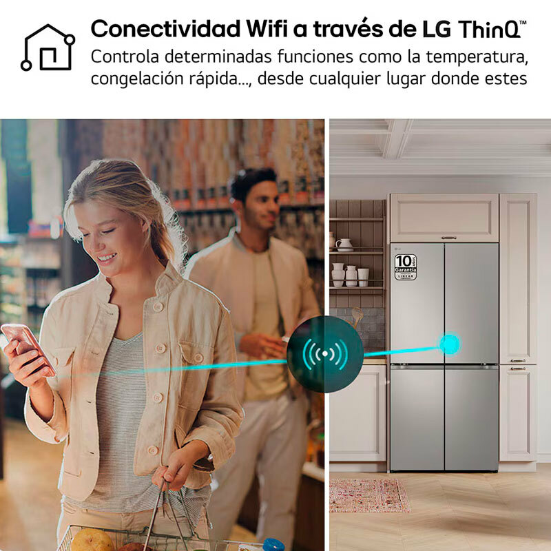 *¡¡Puerta moderna totalmente plana:!! Revolución tecnológica para tu cocina *¡¡LG ThinQ™:!!n Mayor comodidad con tu hogar inteligente *¡¡Inverter Linear™:!! Para un consumo eficiente *¡¡Diseño Premium y elegante:!! Perfectamente integrado en el diseño de tu cocina. Puerta plana que completa el diseño minimalista y Premium de este frigorífico. Quedará perfectamente integrado y alineado con tu cocina. *¡¡Frescura Alimentos más frescos durante más tiempo:!! Controla de forma precisa la temperatura de tu frigorífico para conservar los alimentos frescos durante más tiempo. *¡¡Conectividad Wi-fi:!! Controla tu frigorífico de forma remota. Controla determinadas funciones de tu frigorífico estés donde estés a través de la App ThinQ™ de tu Smartphone, vía wifi. *¡¡Smart Fresh Air:!! Smart Fresh Air optimiza las funciones del frigorífico analizando tus patrones de uso durante 3 semanas. El frigorífico comienza un enfriado más intenso 2 horas antes del momento indicado para conseguir una temperatura y frescura idóneas para tus alimentos *¡¡Economic Care+:!! El sistema Economic Care+ registra los periodos en los que se haga un menor uso del frigorífico durante 3 semanas. El frigorífico activa el modo ahorro para reducir los movimientos del compresor consiguiendo así un menor consumo de energía *¡¡Ahorra en tu factura con un consumo responsable:!! El compresor Linear Inverter Compressor™ ajusta la velocidad del motor para enfriar de manera eficiente mientras reduce el consumo de energía y garantiza un rendimiento duradero con su garantía de 10 años.