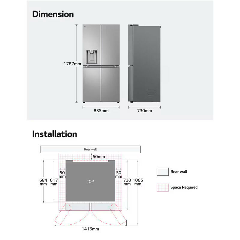 Diseño de puertas planas para una estilo moderno Elegancia contemporánea redefinida para su cocina. La puerta plana y el tirador integrado añaden un toque de elegancia a su cocina. - Cuidado de higiene: Pruebe la frescura. Disfrute de agua pura cada vez con nuestra tecnología UV, que elimina 99.99% de las bacterias. - Frescura: Conserva la frescura de la naturaleza. La nueva tecnología de refrigeración avanzada de primera línea de primera línea de la nevera de puerta francesa mantiene tus productos en la máxima frescura. - Mantenga la comida fresca hasta 7 días: Linear Cooling reduce las fluctuaciones de temperatura a menos de 0,5 ºC - Conectividad Wi-Fi: Experimente una vida inteligente: Manténgase conectado con LG ThinQTM. Administra tu refrigerador fácilmente y recibe las últimas alertas desde cualquier lugar con la aplicación LG ThinQTM - Vincula tu nevera y smartphone: La aplicación LG ThinQTM le ofrece un monitoreo inteligente de nevera y le permite activar la función ‘Express Freeze’ con solo un toque de un botón. - Controla tu nevera con facilidad desde cualquier lugar: Olvidé cerrar la puerta del refrigerador? No te preocupes. La aplicación LG ThinQTM enviará una notificación a tu teléfono para avisarte. - Smart Fresh Air optimiza el rendimiento del refrigerador analizando los patrones de uso durante un período de 3 semanas. Activa el aumento del enfriamiento 2 horas antes de su uso máximo para mantener una temperatura y frescura óptimas para sus alimentos almacenados. - Economic Care identifica períodos de uso reducido del refrigerador en función de sus patrones de uso durante un período de 3 semanas. El modo de ahorro ralentiza los movimientos de compresores para reducir el consumo de energía. - Smart Ice Plus El algoritmo Smart Ice Plus determina la cantidad de hielo tomado por los clientes y entrega más hielo rápidamente a los clientes que necesitan mucho hielo. - Enfría más rápido, ahorra energía: El Compressor LinealTM LG InverterTM mantiene las temperaturas ideales de manera eficiente y rápida, con una garantía de 10 años en las piezas del compresor. - (1) SI INCLUYE LA RETIRADA DEL APARATO VIEJO SI SE SOLICITA - NO INCLUYE EL USO DE MEDIOS ADICIONALES A LA ENTREGA (grúas, vehículos especiales,...)