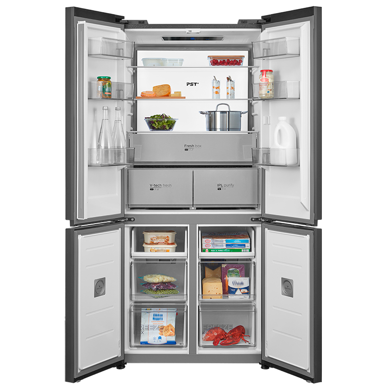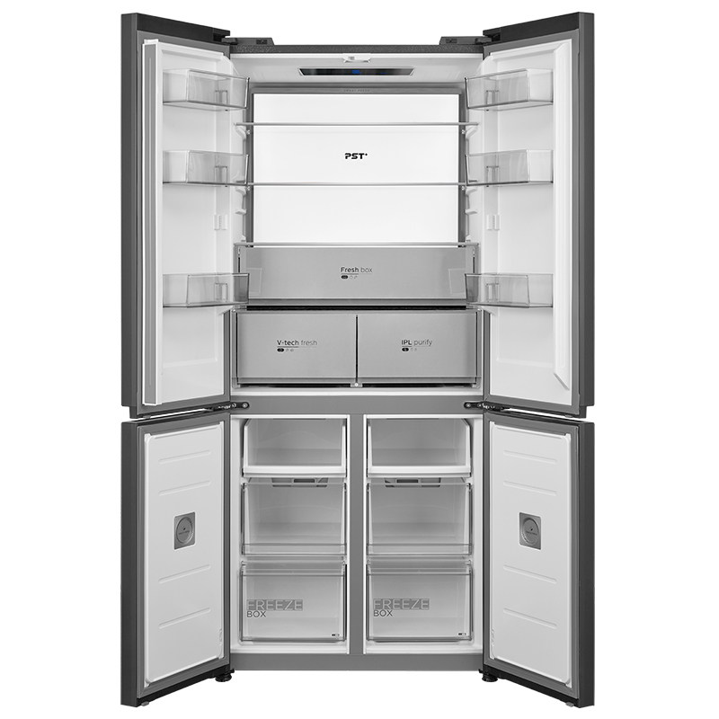 Diseño enrasado: Gracias a su diseño de 600 mm de profundidad y al sistema de ventilación inferior forzada, este frigorífico puede instalarse con tan solo 2 mm de espacio lateral, integrándose de forma elegante en cualquier mueble de cocina. Las puertas no invasivas, equipadas con bisagras de doble eje patentadas, permiten una apertura fluida sin interferencias, incluso en espacios reducidos. - Tecnología V-Tech Cuando el pescado y la carne se guardan en los cajones del congelador Midea V-tech, su color, olor, estado, humedad, proteínas, grasas, estafilococos áureos y facilidad de corte permanecen casi sin cambios después de 7 días. - Sistema de circulación de aire dual Las capas superior e inferior de los cajones tienen cada una su propio suministro de aire, creando un doble sistema de circulación. - Sistema de Purificación Esta tecnología mantiene el interior del frigorífico fresco y libre de olores gracias a una triple acción: succión de vórtice, iones PLASMA de alta energía y catalizadores metálicos que eliminan bacterias y residuos, maximizando la protección y la pureza del aire. - Cajón Esterilizador En tres minutos, luces intensas pueden matar el 99,99% de Salmonella, Listeria, E. coli, Staphylococcus aureus y coronavirus humano en bolsas de plástico. - Panel de control a color Intuitivo y fácil de usar. - Pared de luz LED: Una iluminación nítida y amplia ilumina todo el interior del refrigerador. - SmartHome App Conéctate y controla tu frigorífico en cualquier momento y lugar.
