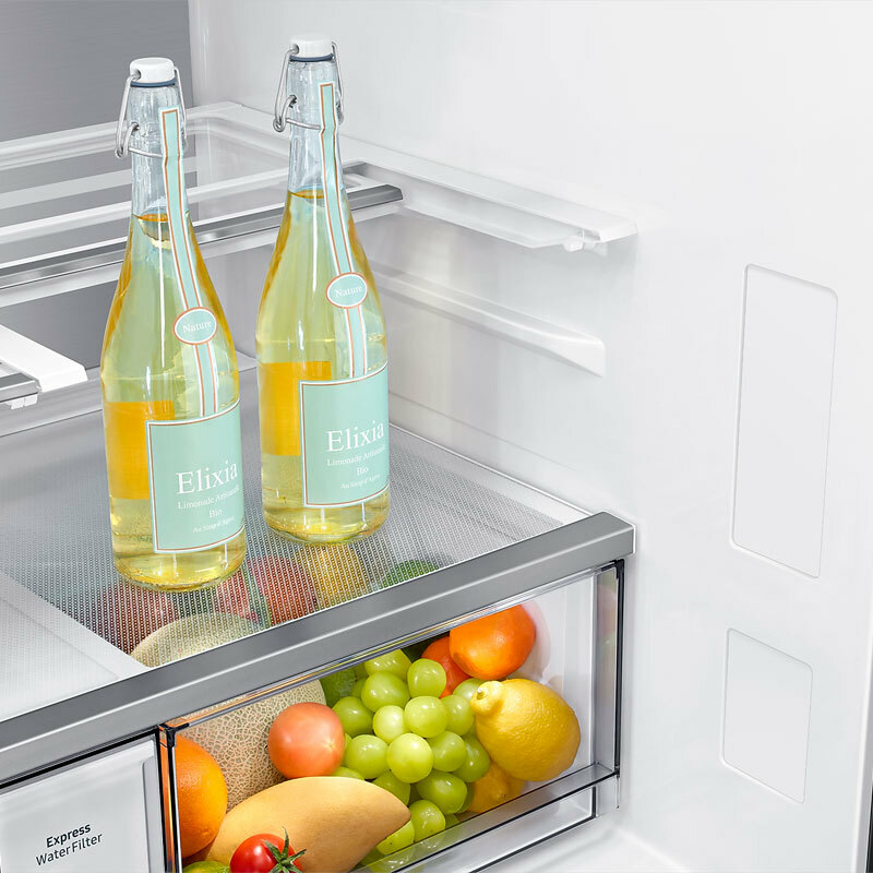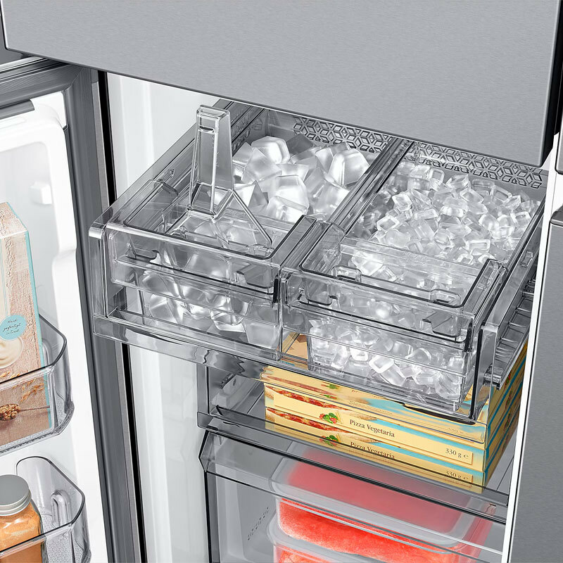 *¡¡AI Vision Inside:!! Gestiona de una forma inteligente tus alimentos. Usando una cámara interna, AI Vision Inside, identifica alimentos y fruta fresca cuando se introduce en el frigorífico o se coge, además, permite gestionar tu lista de la compra. Puedes ver imágenes en la pantalla, obtener sugerencias de recetas y saber fecha de caducidad de tus alimentos. *¡¡SmartThings AI Energy Mode:!! Ahorra hasta un 30% de energía gracias a la Inteligencia Artificial. Controla el consumo de energía, ahorra dinero y recibe consejos útiles. *¡¡Beverage Center:!! Agua disponible en cualquier momento con su jarra autorrellenable y su dispensador interno. Reduce los contaminantes y bacterias. Con la certificación NFS de su filtro fácil de limpiar, podrás mantener la salud de tu familia. *¡¡Family HUB:!! Con la app SmartThings y SmartThings Home, puedes controlar los dispositivos inteligentes, el uso de energía y las emisiones de carbono de tu hogar fácilmente. Integra Google Nest y podrás controlar los dispositivos Nest y Ring Doorbell para saber quién está en la puerta. *¡¡Entretenimiento:!! Disfruta de tu contenido favorito en la cocina. Con Family Hub puedes ver vídeos de YouTube, escuchar canciones o la radio en distinas apps. *¡¡Cocina con comodidad:!! Preparar tus comidas nunca había sido tan fácil. SmartThings Food* te recomienda recetas con instrucciones fáciles y envía los ajustes correspondientes a tus aparatos de cocina. Y con un solo toque o comando de voz, podrás añadir ingredientes a la lista de la compra y comprarlos online. *¡Comunicación en familia:!! Descubre nuevas formas de conectar y pasar tiempo con tu familia. En Family Hub podrás compartir información y mensajes, dejar notas, listas de tareas, instrucciones y horarios, sincronizar los calendarios de todos o publicar fotos, para descargarlas y subirlas con Google Fotos. *¡¡SmartThings energy:!! Toma el control de tu consumo energético, reduce tu huella de carbono y ahorra dinero. SmartThings Energy te da consejos para ahorrar energía y monitoriza el consumo de tus electrodomésticos en tiempo real para compararlo con el del mes anterior. *¡¡Mantenimiento inteligente y sencillo:!! SmartThings Home Care te ofrece la posibilidad de monitorizarlo en tiempo real y recibir alertas: podrás comprobar cómo está funcionando el estado del filtro de agua. También te notificará automáticamente si alguna pieza necesita reponerse o si detecta problemas, te sugerirá una solución. *¡¡Administra, prepara y compra alimentos de forma mas eficiente:!! SmartThings Cooking te permite crear una lista de los alimentos que hay en tu frigorífico y controlar las fechas de caducidad para que sepas en todo momento qué es lo que tienes. En función de tus preferencias y de lo que tienes, también te ofrece recetas personalizadas. *¡¡Triple Cooling Plus:!! Triple circuito de refrigeración, gracias al cual no se mezclan los olores entre compartimentos y mantiene un nivel de humedad óptimo (65% ~ 70%). *¡¡UV Deodorizer:!! Conserva el aire de tu frigorífico siempre fresco con un filtro desodorizante integrado. El filtro reduce el olor del aire de tu frigorífico*, mientras que la tecnología UV limpia continuamente la superficie del filtro por sí sola. *¡¡Dual auto ice maker:!! Con dos tipos de hielo diferentes, estarás preparado para cualquier ocasión. La Dual Auto Ice Maker produce tanto cubitos de hielo como Ice Bites™, para enfriar las bebidas rápidamente. Puede fabricar 2,3 kg de hielo al día y almacenar hasta 4,1 kg. *¡¡Balda deslizable:!! Aprovecha al máximo el espacio de tu frigorífico almacenando objetos grandes y voluminosos fácilmente. La balda deslizante ocupa la mitad del ancho del frigorífico y puede moverse hacia atrás para crear más espacio y así almacenar botellas altas, recipientes grandes y objetos voluminosos. *¡¡Filtro de agua interno (opcional):!! Bebe siempre agua limpia y fresca gracias al filtro de agua interno* que elimina algunas impurezas del agua del dispensador. Ahora podrás disfrutar de bebidas frescas sin preocuparte por su calidad. El filtro también es de fácil mantenimiento, ya que solo es necesario sustituirlo cada 6 meses. *¡¡Compresor de alta eficiencia mejorado:! Tus alimentos siempre frescos mientras ahorras energía. Gracias al diseño mejorado del compresor Digital Inverter de alta eficiencia, su inercia es 4,1 veces mayor que la de otros compresores existentes en el mercado, por lo que requiere menos energía. El compresor tiene una garantía de 20 años.