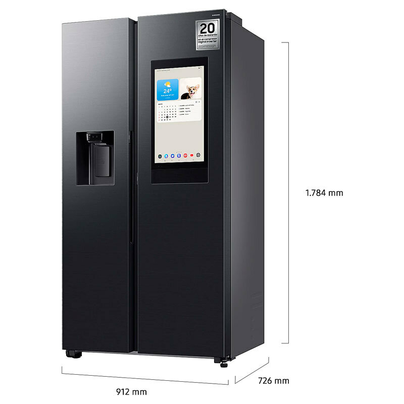 Mucho más que un frigorífico: Tu frigorífico es tu centro de operaciones. Gracias a su pantalla de 21.5”, organiza tu día 1, disfruta de entretenimiento (música, videos e internet). Comparte fotos y notas y controla tus dispositivos conectados. - SmartThings Al Energy Mode : Ahorra hasta un10% de energía gracias a la Inteligencia Artificial.3 Controla y ajusta tus consumos, ahorra en tus facturas y recibe consejos útiles. - Apertura completa con sensor y control por voz: Abre por completo la puerta del frigorífico al tocar suavemente el sensor. Consulta lo que necesites a Bixby, el asistente de voz con Al que te sugiere recetas. Hazle preguntas o díctale notas para guardarlas como recordatorio. - Twin Cooling Plus: Doble circuito de refrigeración independiente que evita la mezcla de olores y mantiene un nivel de humedad óptimo (entre el 65 y el 75%), conservando los alimentos - Metal Cooling: Placa metálica que reduce la dispersión del frío, mantiene la temperatura constante y recupera rápidamente la temperatura interior tras abrir la puerta. - Bixby: Control por voz Consulta lo que necesites a Bixby, el asistente de voz con AI que te sugiere recetas según los alimentos que tengas en tu nevera. Puedes hacerle preguntas o dictarle notas para guardarlas como recordatorio. - Power Cool y Power freeze: Enfría tus bebidas o congela los alimentos que necesites rápidamente*. Con sólo pulsar un botón, Power Cool emite aire frío de forma intensa, dentro del frigorífico, para que alimentos y bebidas se enfríen rápidamente. Por otra parte, Power Freeze es ideal para tener hielo listo cuando lo necesitas. - Tecnologia Cool Select+: Adapta tu frigorífico con 6 modos de temperatura, como el modo vacaciones, para ahorrar energía*. Convierte el congelador en frigorífico con opciones como soft freeze (-5ºC), cold (-1ºC) y cool (2ºC). - SmartThings AI energy mode: El AI Energy Mode analiza tu consumo de energía de forma diaria, semanal y mensual. Si tu factura supera el objetivo preestablecido, te ofrece la opción de ahorrar energía de forma proactiva (hasta en un 10%). Al activarse, optimizará de forma inteligente la velocidad del compresor - WiFi integrado: Controla tu frigorífico con el WiFi integrado y la app SmartThings. Ajusta los modos de enfriamiento rápido como Power Cool y Power Freeze, cambia la temperatura de forma precisa y recibe alertas si la puerta se queda abierta. Además, esta conexión diagnostica problemas optimizando su rendimiento. - Eficiencia energética inteligente: Mantén el consumo energético de tus electrodomésticos conectados a SmartThings bajo control y ahorra. SmartThings Energy te da consejos para ahorrar energía y monitoriza el consumo de tus electrodomésticos en tiempo real. También te avisa si tus objetivos mensuales se exceden - Mantenimiento automatizado: Cuidar tu frigorífico nunca fue tan fácil. SmartThings Home Care te ofrece la posibilidad de monitorizar su estado en tiempo real y recibir alertas. También te notifica automáticamente si alguna pieza necesita reponerse o si detecta problemas y te sugiere soluciones. - Inteligencia en la gestion de tus alimentos: Gestiona y prepara alimentos de forma más eficaz y sin esfuerzo. Con SmartThings Cooking puedes crear una lista de los alimentos almacenados en tu frigorífico y gestionar sus fechas de caducidad. Podrás consultar, siempre que necesites, qué artículos tienes y elaborar recetas guiadas paso a paso. - Compresor AI inverter con 20 años de garantia: Mantén una temperatura constante en el frigorífico y ahorra energía. Mediante un algoritmo de AI, ajusta su velocidad para adaptarse a los patrones de uso del usuario* y consumir menos energía. El compresor tiene una garantía de 20 años - Dispensador de agua y hielo con toma: Ten siempre a mano agua fresca y el hielo que necesites gracias al práctico dispensador externo integrado en la puerta del frigorífico. - Balda botellero: Espacio y flexibilidad para guardar tus bebidas y alimentos. Almacena vinos de tamaño estándar y botellas grandes junto con cajas de diferentes tamaños en este híbrido entre balda y botellero. Tu frigorífico se convierte en un lugar versátil y flexible para adaptarse realmente a lo que necesitas.