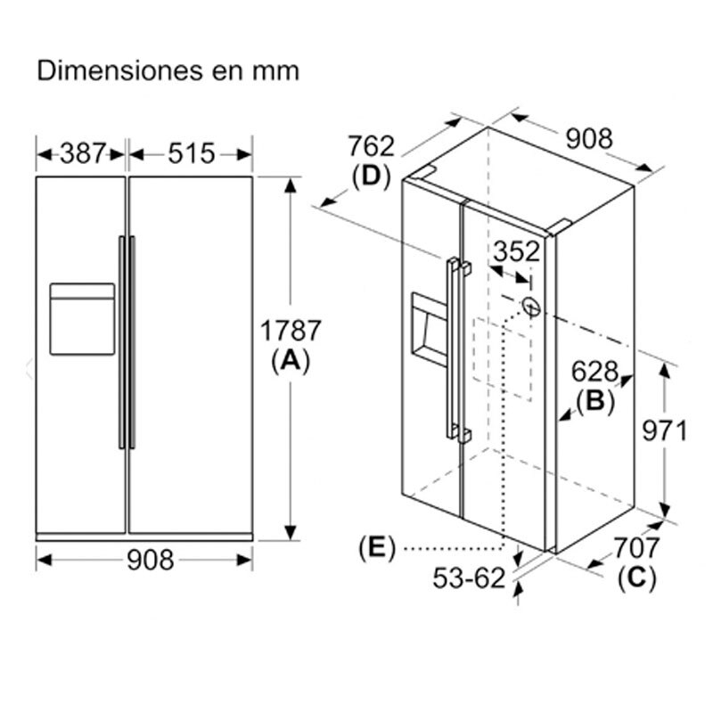 Gran capacidad Mucho espacio para almacenar todo lo que imagines. Los compartimentos grandes y la capacidad de almacenamiento extra, ofrece un espacio suficiente para toda la compra semanal gracias a su gran capacidad. Mantén tus opciones culinarias abiertas. - Total noFrost Congelador sin escarcha, ni gota en tu frigorífico. Con la tecnología Total noFrost, olvídate de tener que descongelar tu congelador. Extrae la humedad y mantiene el aire seco, evitando la formación de escarcha en las paredes y tus alimentos. Esto también se aplica al área del frigorífico. La humedad y la formación de hielo ya no aparecerán en la pared trasera, manteniendo tus alimentos frescos. Esto no solo te ahorra el esfuerzo de descongelar, sino que también hace que tu electrodoméstico sea más eficiente energéticamente. - Dispensador de hielo y agua Refréscate con solo pulsar un botón. Disponer de cubitos y agua fría al instante es muy cómodo cuando hace calor. O cuando quieres servir bebidas frías a tus invitados. Gracias al dispensador de hielo y agua con conexión a toma de agua, no tendrás que acordarte de poner cubiteras en el congelador o jarras de agua para enfriar en la nevera. Solo tienes que ir al frigorífico y obtener al instante cubitos, hielo picado o agua fría filtrada cuando quieras en el dispensador. Es la forma más fácil de refrescarte sin tener que hacer nada. - HomeBar Tus bebidas al alcance de tu mano. Cada vez que abres el frigorífico para coger una bebida, se escapa una parte del frío y el motor se activa para restablecer la temperatura. Esto incrementa el consumo y puede afectar a la conservación del resto de alimentos. Para evitarlo, hemos creado el compartimento HomeBar, donde puedes guardar todas tus bebidas a la temperatura ideal y acceder a ellas sin abrir la puerta del frigorífico. Solo tienes que abrir la puerta del compartimento para acceder a tus vinos y bebidas favoritas. - Alarma de puerta abierta Mantén el frío donde corresponde: dentro. ¿Alguna vez olvidas cerrar la puerta del frigorífico o crees que has cerrado correctamente pero no? Gracias a la alarma de puerta abierta, cuando pase unos segundos y la puerta no esté bien cerrada, te avisará para que la cierres correctamente. De esta forma evitas que la temperatura del interior aumente, consumes menos energía y conservas mejor los alimentos. Si tiene y está conectado a Home Connect, recibirás una notificación. - Botellero El mejor sitio para guardar tus botellas. Las botellas no siempre caben bien en el frigorífico. Nuestro botellero te ofrece una solución flexible para guardar botellas pequeñas y grandes, además de latas y tarros, en compartimentos a medida. Así estarán más seguras y serán más fáciles de encontrar. - Super-refrigeración Enfría rápido, conserva mejor. Enfriar rápidamente los alimentos frescos es la mejor garantía para conservar su frescura y sabor. La función de super-refrigeración está pensada precisamente para eso. Con solo tocar un botón, reduce la temperatura para enfriar rápidamente los productos frescos que metas en el frigorífico. De esta forma, mantienen todas sus propiedades hasta que los necesites para cocinar. También puedes activar la función de super-refrigeración a distancia si tienes un frigorífico conectado mediante la aplicación Home Connect. Por ejemplo, cuando estás volviendo de la compra y vas a introducir nuevos alimentos en el frigorífico. - Súper congelación Congela más rápido, conserva mejor. ¿Has hecho la compra semanal y quieres que los nuevos alimentos se congelen rapidamente? Con Súper Congelación, tu congelador baja a la temperatura mínima, logrando que los alimentos recién añadidos se congelen rápidamente mientras los ya congelados se mantienen en perfectas condiciones, y tras ello se desactiva. Lo perfecto sería activar esta función entre 4-6 horas antes de añadir los nuevos alimentos para congelar. Puedes hacerlo directamente en el producto o a través de la app Home Connect (si dispone de esta funcionalidad). - Flexibilidad total Personaliza el compartimento del congelador. Gracias a su gran flexibilidad, puedes mover o quitar los cajones y los estantes de cristal según tus necesidades cada momento. Organiza de forma flexible el compartimento del congelador para guardar mejor tus congelados. - Tecnología Multi Airflow Enfriamiento uniforme, en todo momento. En los frigoríficos convencionales, la temperatura no es igual en todas las zonas. Sin embargo, con el sistema Multi Airflow, no tendrás que preocuparte por las fluctuaciones de temperatura. Distribuye aire frío por todo el interior, lo que garantiza unas condiciones uniformes de humedad y temperatura. De este modo, puedes colocar los alimentos en cualquier parte del frigorífico y se conservarán igual de bien. - Bandejas de cristal Bandejas resistentes y fáciles de limpiar. Las bandejas de vidrio están hechos de material de seguridad extra fuerte y fácil de limpiar. Si se derrama algo, gracias a los perfiles el líquido se retiene, evitando que se extienda a otras áreas del frigorífico. Disfruta de la tranquilidad de tener un refrigerador siempre limpio y seguro. - Compresor con tecnología Inverter Más eficiencia, menos ruido y ahorro de energía. El compresor con tecnología Inverter ajusta la temperatura del frigorífico según las condiciones del interior y el exterior. Funciona constantemente a la velocidad óptima para mantener los alimentos a la temperatura ideal y ofrecer un rendimiento estable y eficaz. - (1) SI INCLUYE LA RETIRADA DEL APARATO VIEJO SI SE SOLICITA - NO INCLUYE EL USO DE MEDIOS ADICIONALES A LA ENTREGA (grúas, vehículos especiales,...)