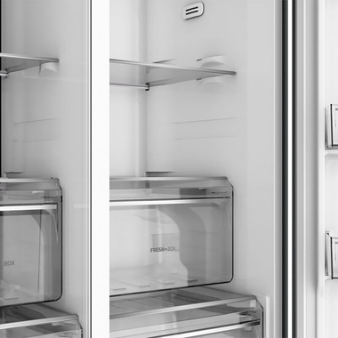 Dos cajones FreshBox en frigorífico 3 Bandejas de cristal de seguridad con perfil metálico